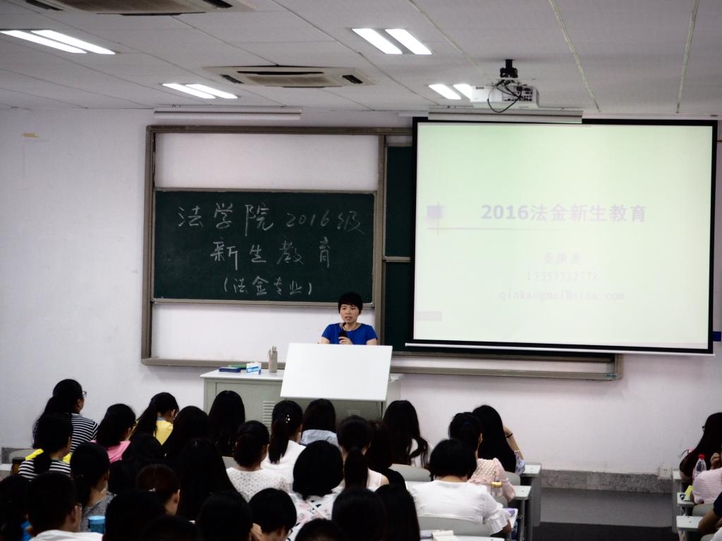9月1日上午,2016级法学、法务会计、法务金融新生专业教育在竞秀北楼104、107,竞慧西313教室分别进行,法学系主任孙展望、实践中心主任秦康美、法务会计系主任朱娟以及青年教师靳宁等老师出席并主持了本次活动。