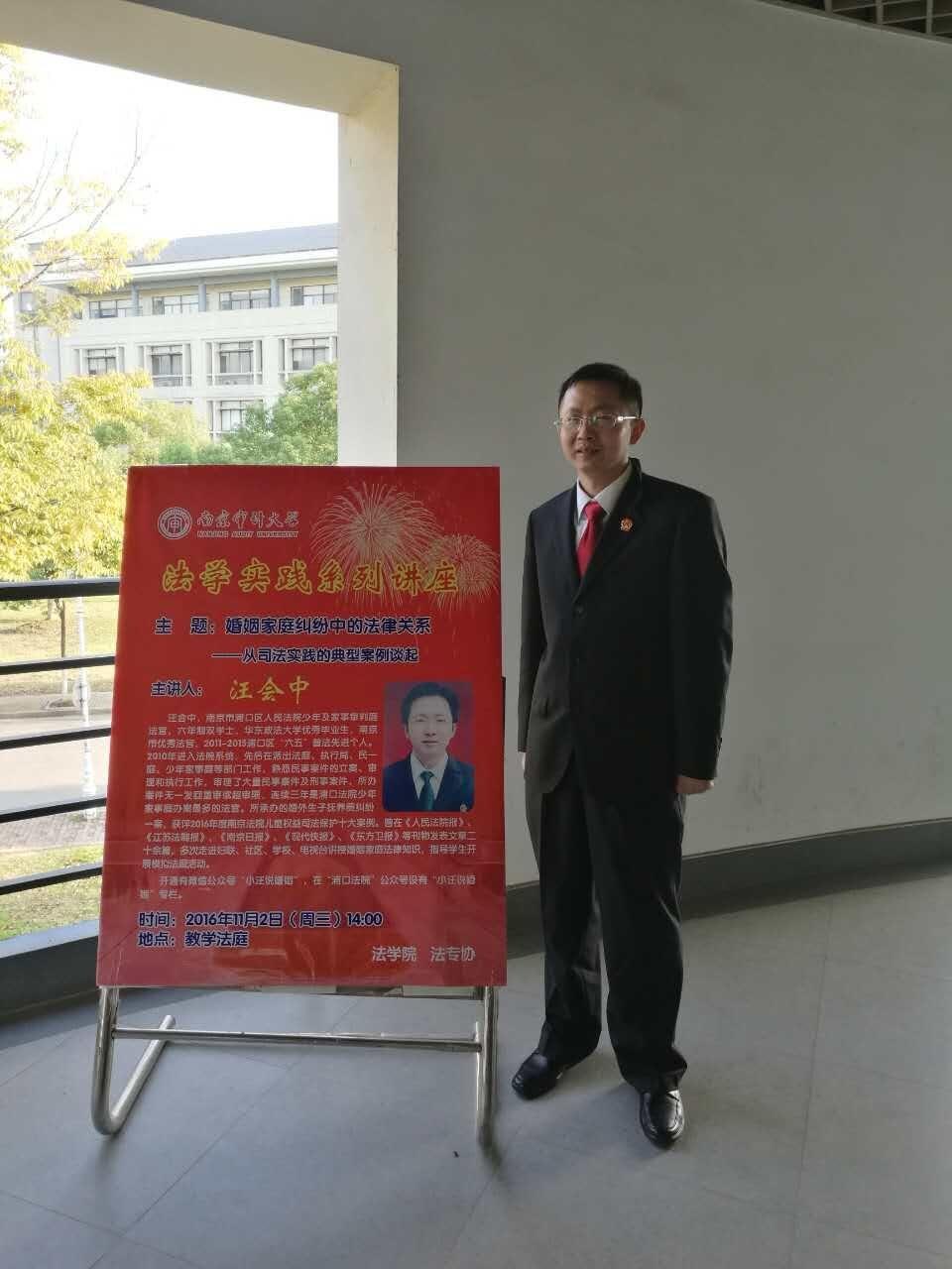 11月2号下午两点,浦口区人民法院少年及家事审判庭的汪会中法官来到南审,在模拟法庭为公司师生送来了一场精彩的法学讲座。本次讲座题目为 “婚姻家庭纠纷中的法律关系——从司法实践的典型案例谈起”,同学们非常积极地参与其中,跟随汪法官走近婚姻家庭法。