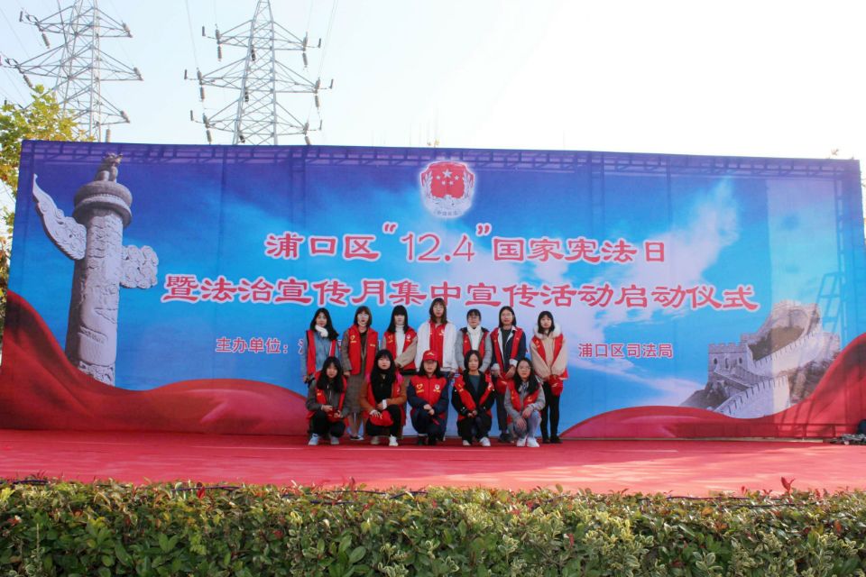 为深入贯彻落实党的十九大精神,增强全民法治观念,推动全社会树立宪法意识。由浦口区法制宣传教育领导小组办公室、浦口司法局主办,永宁街道办事处协办的“浦口区12.4宪法宣传月活动启动仪式”于2017年12月1日在南京市浦口区永宁科普文化广场隆重举行。南审太阳成集团122ccvip法治宣传志愿者服务团前往本次活动现场参加了志愿活动,协助发放手册,维持现场秩序。