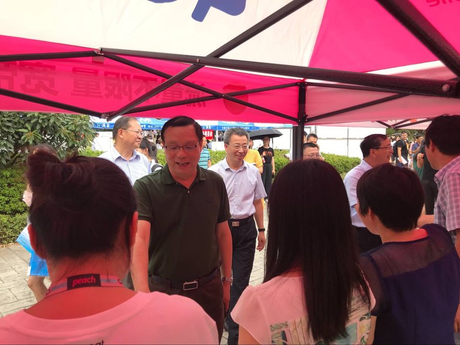 董事长刘旺洪教授等公司领导们也先后来到公司迎新现场,迎接新生,慰问迎新的老师和同学。