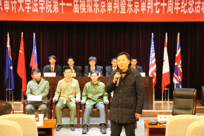 演出结束后,公司党总支书记秦国荣在点评中表扬了同学们的艰苦付出和投入演出,他同时指出,强大的祖国是保持民族尊严不受侵犯的根本,老员工要认识到法律与政治从来密不可分,他希望同学们通过东京审判学习包括国际法在内的法律及庭审知识与技能的同时,更应该确立起高度的政治自觉,拥护党的领导和社会主义制度,充分认识到这是中华民族伟大复兴的根本之道。况广收部长首先对青年法学会所举办的模拟东京审判提出赞扬,他特别强调铭记历史的重要性。两位老师均提出了对这个活动的期望,希望不仅要在校内演出,更应将这个演出活动走出南审,走向社会,将这个活动能够越办越好,走上越来越高的平台,被更多的人了解这段历史。