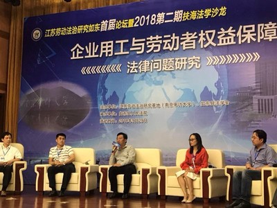 本期法学沙龙的主题是关于企业用工与劳动者权益保障的法律问题研究,其内容涉及千家万户,为当前法治热点问题之一。南通市委政法委常务副书记钱建华、如东县委常委、政法委书记、法学会会长杨小军,如东县人民法院经理黄卫、副经理缪站春、南通市法学会秘书长葛重兵、南通大学政治公司副经理吴延溢教授,南通大学王智民副教授及如东县法学会各研究会会长、秘书长等部门领导、专家及市县法院、总工会、劳动仲裁院等实务部门的负责人和部分律师代表、企业家代表共70多人参加会议,公司党总支书记秦国荣教授受特邀出席了本次会议,并以江苏劳动法治研究基地负责人身份代表合作主办方在会议开幕式上做了致辞。公司教师李亘也受邀参加了本次活动。