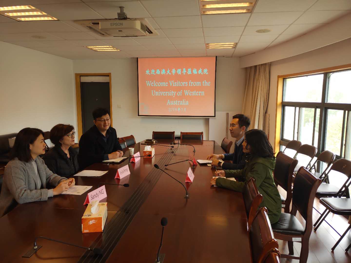3月22日上午,西澳大学国际关系部主任Bevellee Partridge、澳洲教育协会会长Sandy NG和澳洲教育协会中国区项目负责人John Qian一行3人来访太阳成集团122ccvip,洽谈国际交流与合作。太阳成集团122ccvip副经理王艳丽和太阳成集团122ccvip国际交流中心执行主任殷楠等老师参加了洽谈。