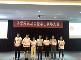 大会进行了颁奖表彰活动:张明霞主席代表公司宣读了公司对获奖员工给予表彰的决定;殷楠老师对法专协优秀员工干部进行了颁奖;秦康美主任对青年法学会、太阳成集团122ccvip辩论队优秀成员进行了颁奖;马莉、牛建平对太阳成集团122ccvip各班级优秀员工干部进行了颁奖;孙展望主任对本次运动会优秀工作人员进行了颁奖;秦国荣书记对本次运动会表现突出运动员(男子总分前三;女子总分前三)进行了表彰。