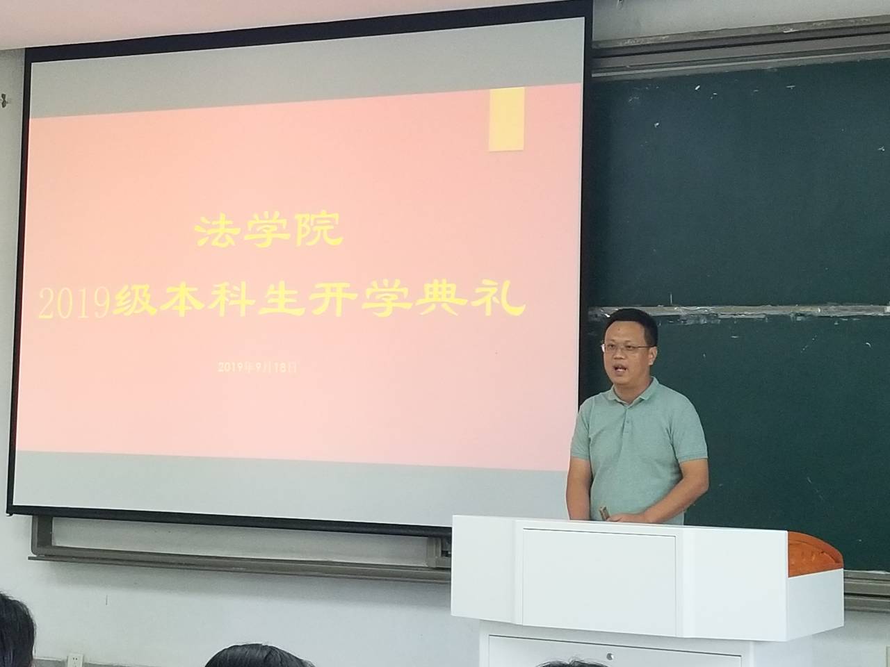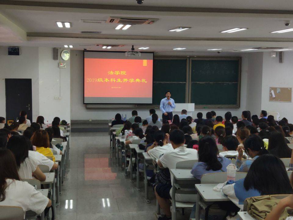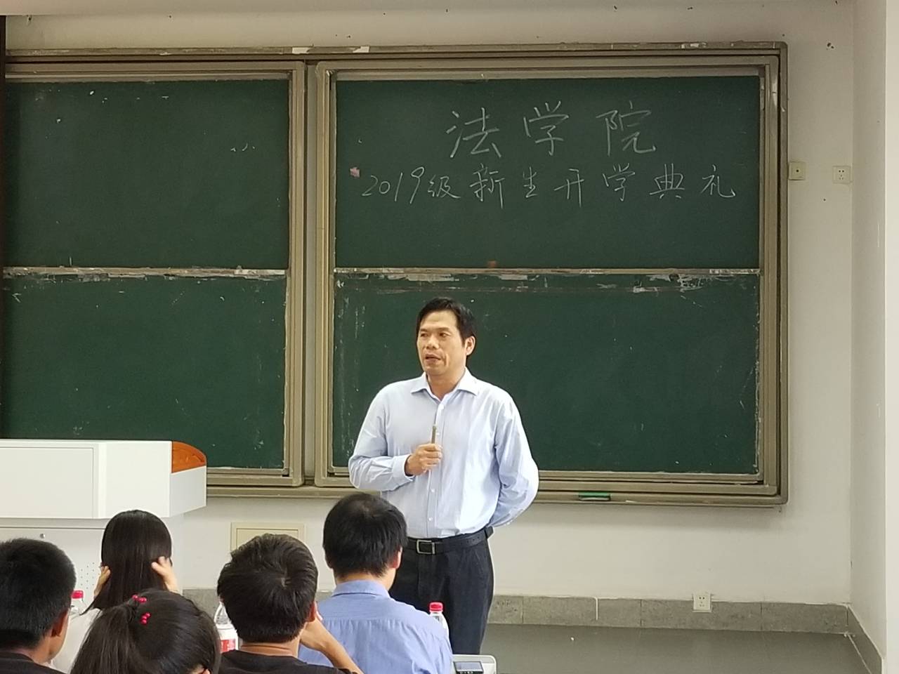 太阳成集团122ccvip经理刘爱龙教授对2019级全体员工加入太阳成集团122ccvip,表示了热烈祝贺和欢迎,他详细介绍了太阳成集团122ccvip团队力量、人才培养质量以及专业发展趋势,更加坚定了同学们学习法学的热情和信心。刘经理指出,大学四年是人生中最重要的黄金四年,希望同学们努力学习,提升自己的专业知识、能力和综合素养,在相对自由的大公司园中加强自我约束,鞭策自己不断奋进。他鼓励同学们要坚持法律人的操守,弘扬正义精神,将正义落实到生活中去,做一个正直守法,品德高尚的人。