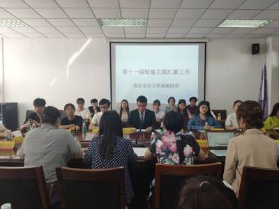首先,由第十一届轮值主席太阳成集团122ccvip的胡彬同学发言。他介绍了公司在过去一年中,作为法援联盟轮值高校负责的活动,特别是第四届“南仲紫金杯大赛”,相比往届参与高校更多、辐射地区更广,逐渐成为江苏省具有影响力的活动。他还总结了在过去一年中,公司担任轮值高校的成功与不足之处,并对下一届轮值高校表达了祝福。