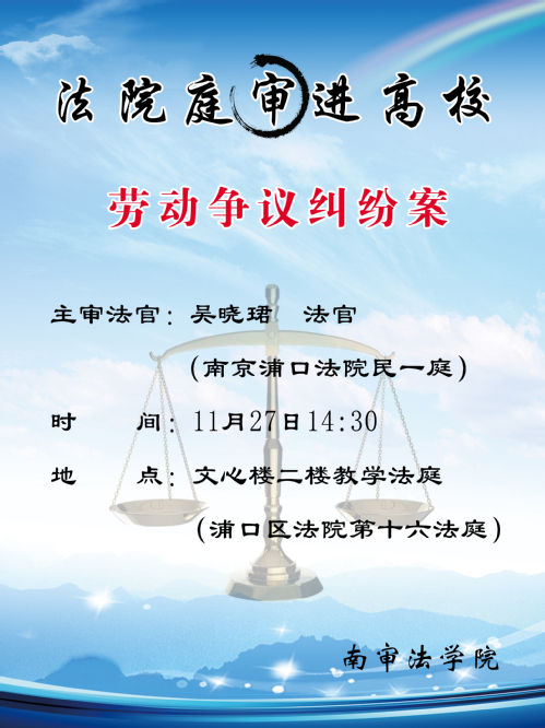 为给员工提供更好的学习平台,经公司与浦口法院协商,浦口法院将于本周三(11月27日)下午在公司教学法庭公开审理案件。