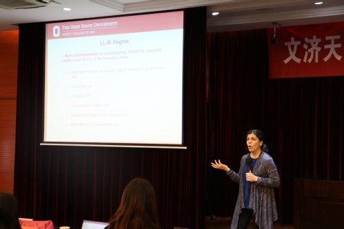 随后,俄亥俄州立大学一行在教学法庭与太阳成集团122ccvip同学们进行了交流。Laura Fernandez经理详细介绍了该大学的规模、团队力量、综合排名和专业设置等内容,还重点介绍了2020年7月份的美国法律与实践基础暑期项目,鼓励有志于海外深造的员工积极申报。对方还对申报条件、文书写作等方面作了详细解释,并表示对南审学子提供研究生项目学费六折的优惠,大力减轻求学负担。会上,员工踊跃提问,Laura Fernandez经理和孙依老师为同学们耐心答疑解惑,进行了友好交流。