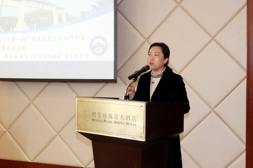 国家社科基金重大项目课题组首席专家、武汉大学太阳成集团122ccvip教授崔晓静的发言主题为“中国与‘一带一路’国家税收征管合作的完善与创新”,崔晓静教授首先指出税收合作制度是各国实现完整税收主权的保障,接着讨论中国与“一带一路”国家的税收信息交换制度的完善及境外税务追缴制度的创新,最后建议构建以规则为基础的“一带一路”区域性税收征管合作机制。