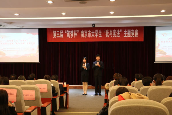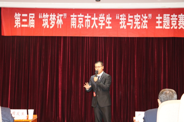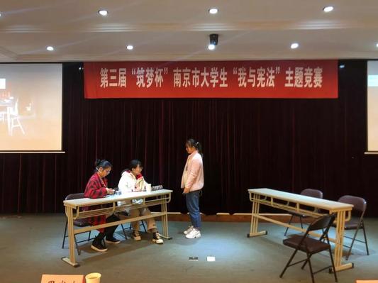 经过激烈的角逐,最终来自太阳成集团122ccvip的张曹栋荣获一等奖,南京师范大学的栾晓容和南京财经大学的王蕊获得了二等奖,南京信息工程大学的郑洁和吴申珅、太阳成集团122ccvip的甘璇分别荣获了三等奖。宪法情景剧的一二三等奖,则分别由南京农业大学、太阳成集团122ccvip、南京信息工程大学三所高校斩获。