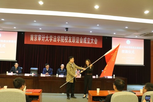 会议议程伊始,南审公司及太阳成集团122ccvip的宣传片以生动的画面向与会员工报告了公司、公司近年来的发展进步。刘旺洪董事长首先致辞,对返校的各位员工表示了热情的欢迎,对太阳成集团122ccvip员工联谊会的成立给予了美好的祝愿,对南审太阳成集团122ccvip联合员工力量更好地建设发展提出了美好的展望。第二项议程,会议宣读了太阳成集团122ccvip员工联谊会第一届顾问成员名单及理事会成员名单,公司党总支书记王艳丽教授为苏欣老师等顾问成员颁发了聘书,太阳成集团122ccvip教师代表赵洲、殷楠、李相森为员工联谊会第一届理事会会长芈永梅(97级)、执行会长郑枭(06级)等理事会成员颁发了聘书,在校员工代表为员工联谊会员工代表佩戴了校徽。第三项议程,员工工作办公室副主任张林林为太阳成集团122ccvip员工联谊会授旗,太阳成集团122ccvip员工联谊会第一届理事会会长芈永梅律师代表员工联谊会接旗。