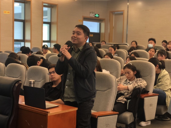在提问环节,同学们积极踊跃向毛老师提出学术和实践问题,毛老师用亲身经历一一耐心作出解答。他指出,当数据具有大量独创性和机密性时,应当归属于知识产权保护。知识产权极具发展前景,因此律师门槛相对较高,复合专业背景可以作为加分点。很多时候证书考试仅仅是水平的证明,相较于实习磨合期,应聘者简历描述对他而言并没有那么重要。