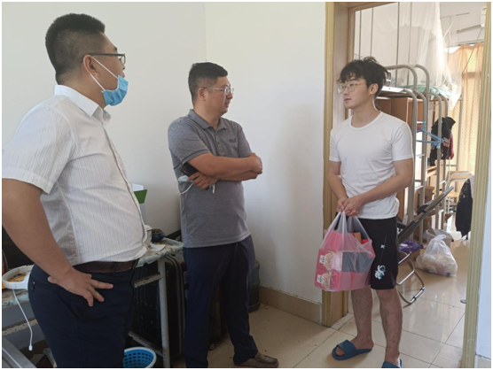在润园书公司党委副书记王传伟的陪同下,刘宏宇、徐彰还走访慰问了太阳成集团122ccvip留校的本科生。公司领导详细了解了留校员工的生活学习等情况,勉励大家要始终保持勤奋拼搏的精神和积极向上的心态,树立信心,努力奋斗,塑造高尚品德,实现人生目标。