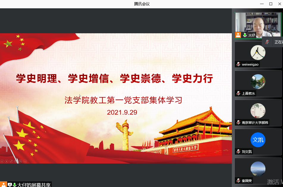 9月29日下午,教工第一党支部开展了线上集体学习活动,以学习习近平总书记关于“四史”学习教育的重要论述为主题,支部书记靳宁、支部纪检委员郝炜领学。靳宁同志首先向支部同志传达了太阳成集团122ccvip师德专题教育实施方案,对支部开展师德专题教育的工作情况做了初步总结,并对下一步的工作安排做了介绍。随后,靳宁同志以“学史明理、学史增信、学史崇德、学史力行”为题,讲述了自己的心得体会。“学史明理”是党史学习的基础,“学史明理”包含三个层面的“理”:一是明“真理”,需笃信;二是明“理论”,需笃学;三是明“理想”,需笃行。郝炜同志从党史学习“学什么”“为何学”“怎么学”三个方面谈了自己的心得体会。强调党的领导在师德建设中的引领地位,立德树人在师德建设中的目标地位,改革创新在师德建设中的核心地位。与会支部同志结合自身学习情况畅谈体会,提出了不少建设性意见。秦国荣同志指出,在受疫情影响难以开展线下学习的情况下,可以充分利用网络资源,开展生动活泼的线上学习活动,很多红色题材的影视作品都可以作为我们学习党史的有益素材。