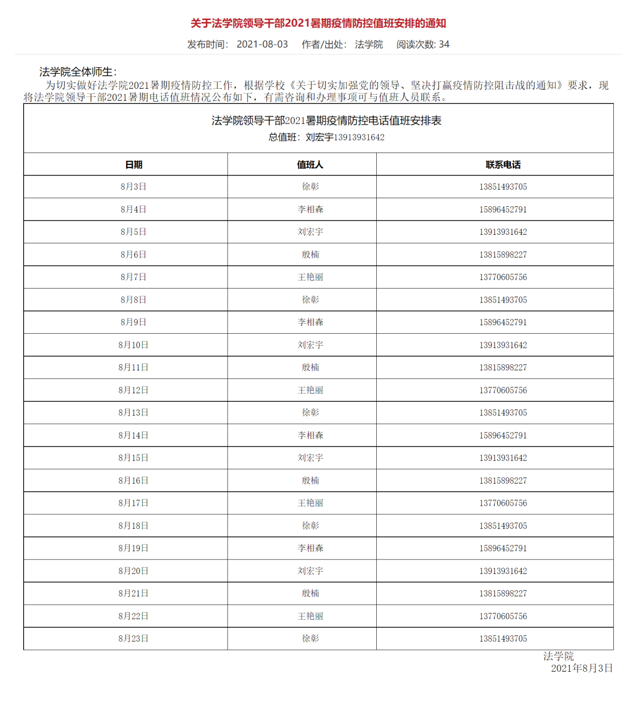 官网院领导电话值班表