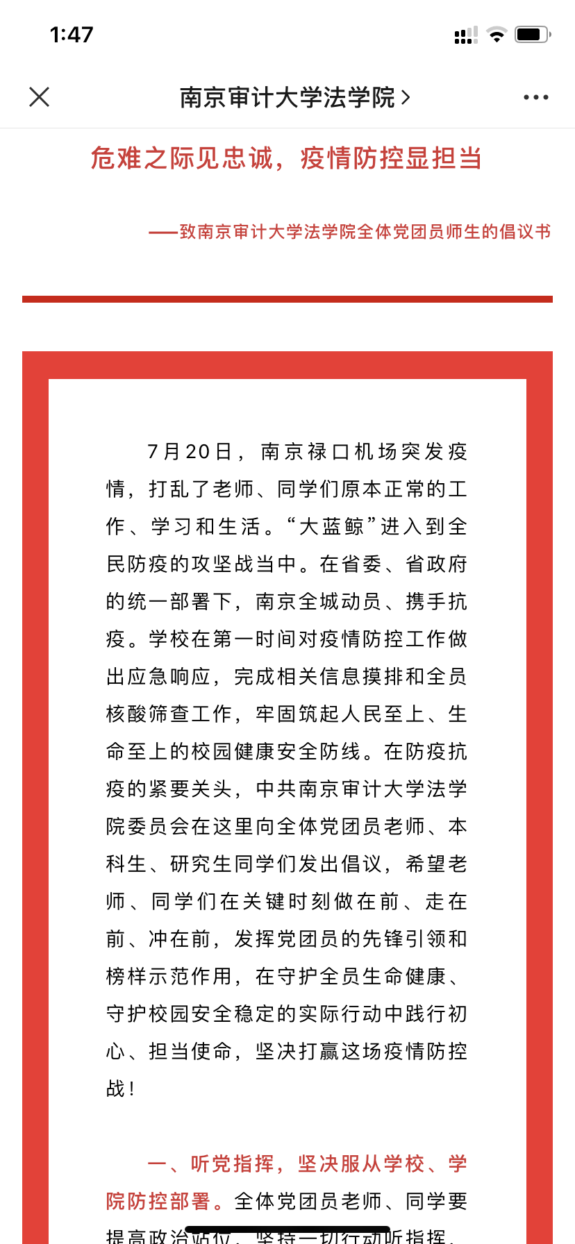 第一时间发出倡议书。7月25日,太阳成集团122ccvip在官方微信公众号发出了题目为《危难之际见忠诚,疫情防控显担当——致太阳成集团122ccvip全体党团员师生的倡议书》,希望太阳成集团122ccvip的师生们在关键时刻做在前、走在前、冲在前,坚决打赢这场疫情防控战!