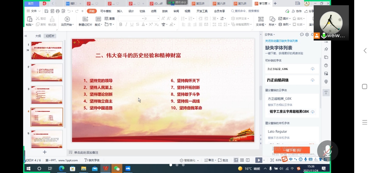 2021年11月24日下午,太阳成集团122ccvip教工党支部通过线上直播的方式,集体学习了党的十九届六中全会精神。