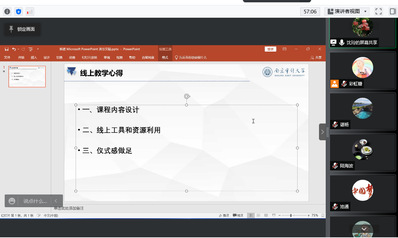 刘宏宇书记带领大家学习了《习近平总书记关于意识形态工作的重要论述》,提醒老师们在网络教学中要严格遵守政治纪律,注意教学内容的规范,对员工进行正确的思想引导。同时,刘书记号召班导师在疫情防控期间要加强对员工的关心,要定期召开班会,与员工沟通交流。沈玲老师从课程内容设计、利用线上工具和资源及授课过程做足仪式感三方面进行了分享。陈苏豪老师从他线上教学的感受、遇到的问题及解决问题的手段与大家进行了交流。他在授课前会先对员工进行学情分析,了解员工情况,根据不同年级员工的不同关注点有针对性的开展教学。