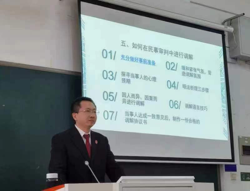 10月25日下午,南京市浦口区人民法院汪会中法官走进公司《法律诊所》课堂,为20级法律诊所的同学们讲授《民事调解》专题内容。