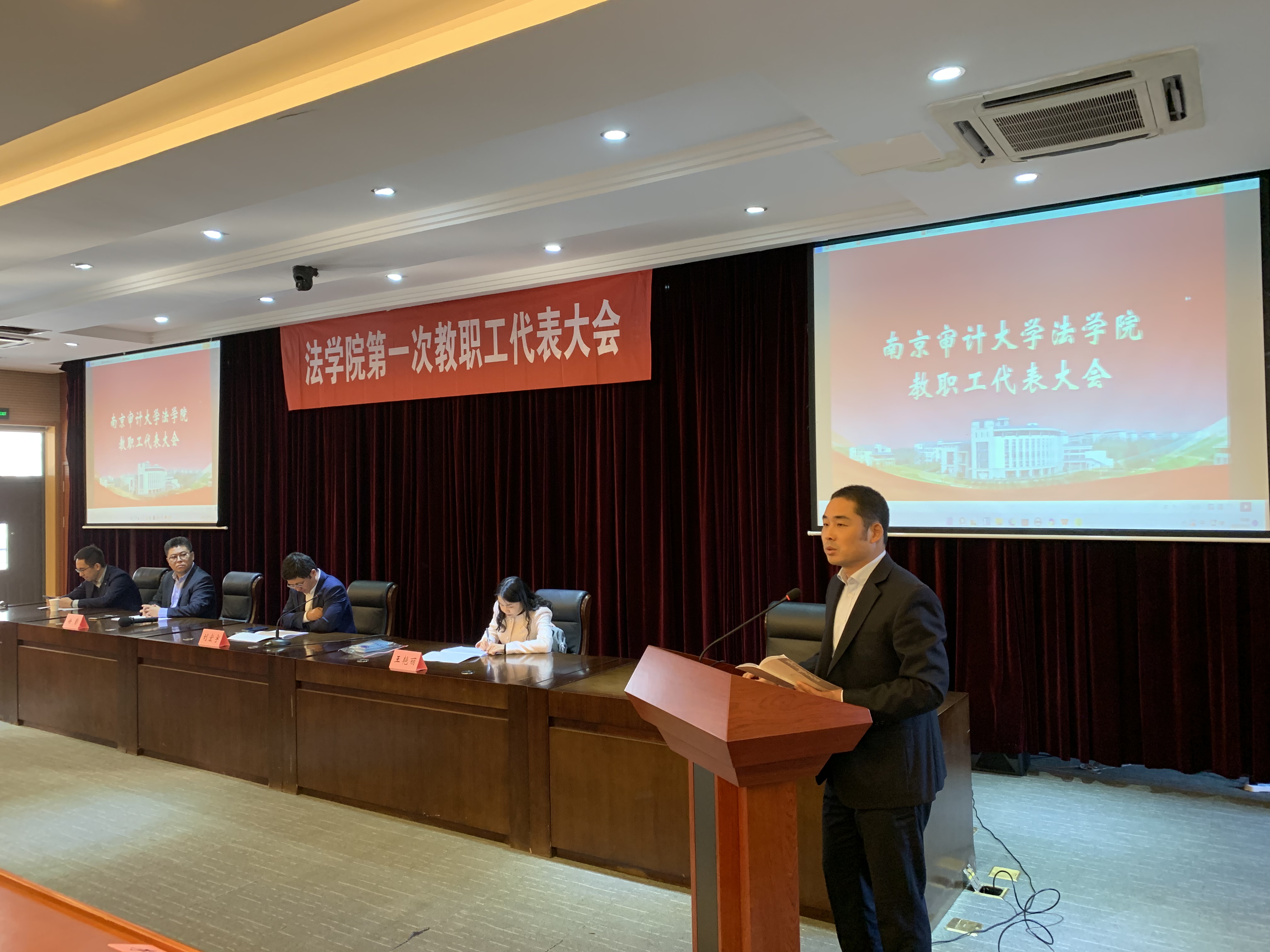 11月2日下午,法公司第一届教职工代表大会在文心二楼模拟教学法庭召开,公司领导班子及全体教职工代表参加会议。会议由党委书记刘宏宇主持。