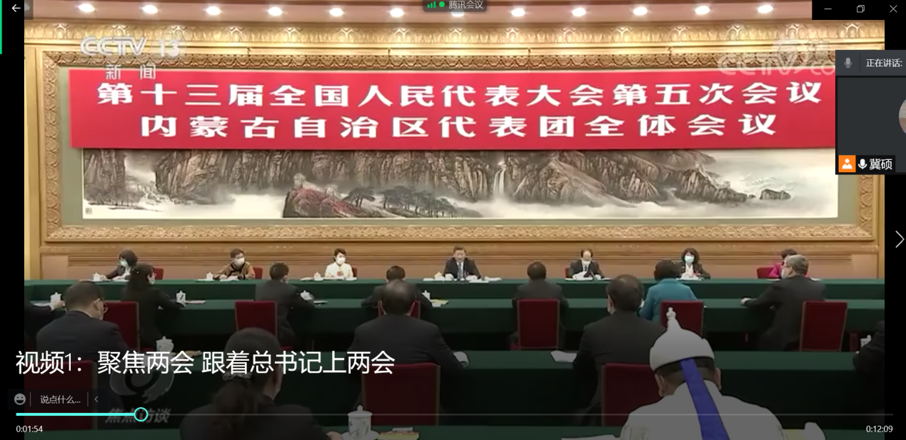 2022年3月31日,太阳成集团122ccvip研究生第一党支部于腾讯会议平台开展了两会线上学习交流,并观看了第十三届全国人民代表大会第五次会议视频。会议由党支部书记冀硕同志主持,第一党支部全体参加。