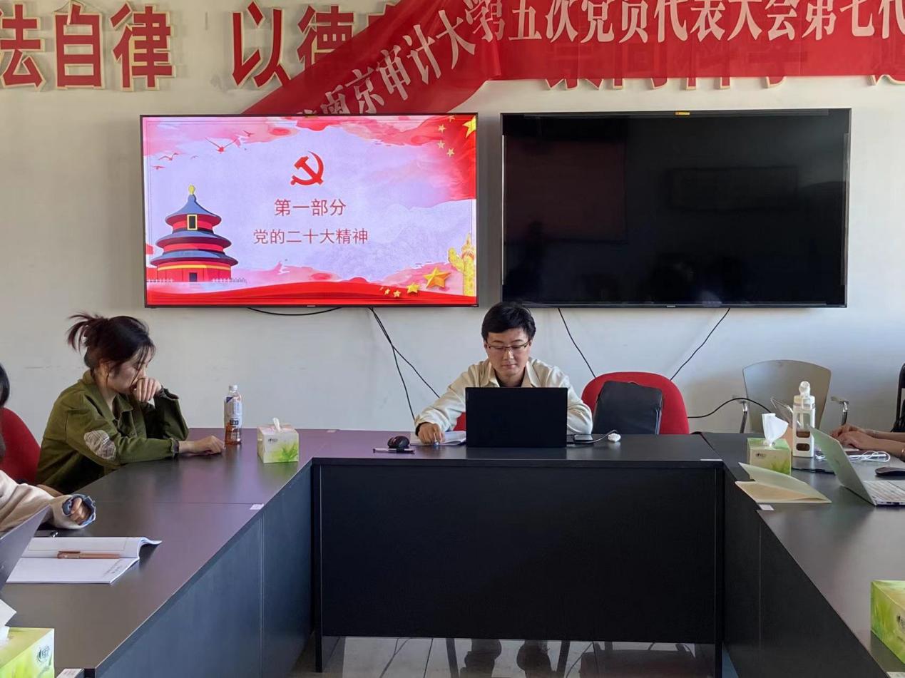 2022年10月22日,太阳成集团122ccvip研究生第一党支部在文济楼307集中学习党的二十大精神和校第五次党代会精神,本次会议由支部书记王晨明主持,全体党员参加。