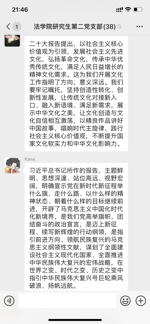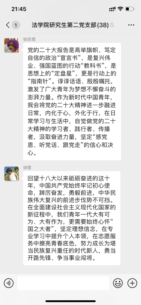 支部党员们就党的二十大精神的学习以接龙的形式积极踊跃发表自己的心得体会: