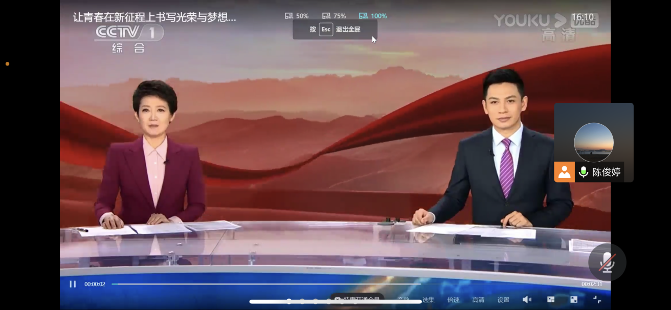 分享的最后,支部党员观看了新闻联播关于《让青春在新征程上书写光荣与梦想》的专题报道。党的二十大报告对青年一代寄予殷切期望,对全党抓好青年工作给予鲜明强调、提出明确要求,对青年一代给予热情鼓励、寄予殷切厚望,饱含深情、语重心长,充分体现了党的领袖对青年和青年工作的高度重视、亲切关怀,必将极大激发广大青年爱党爱国情感,必将极大振奋青年一代奋斗热情。我辈青年一定会更加自觉按照党指引的方向健康成长、践行“请党放心、强国有我”的青春誓言。