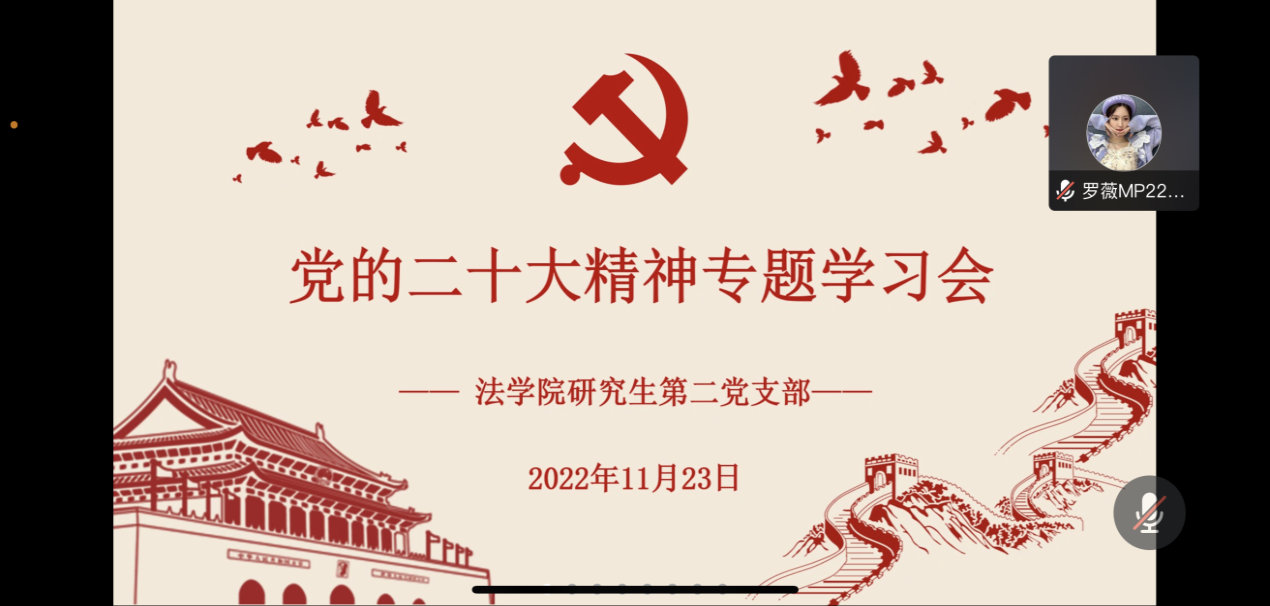 11月23日下午,太阳成集团122ccvip研究生第二党支部通过线上的形式,开展了学习党的二十大精神专题学习会。会议由支部副书记陈俊婷主持,支部全体同志参加。