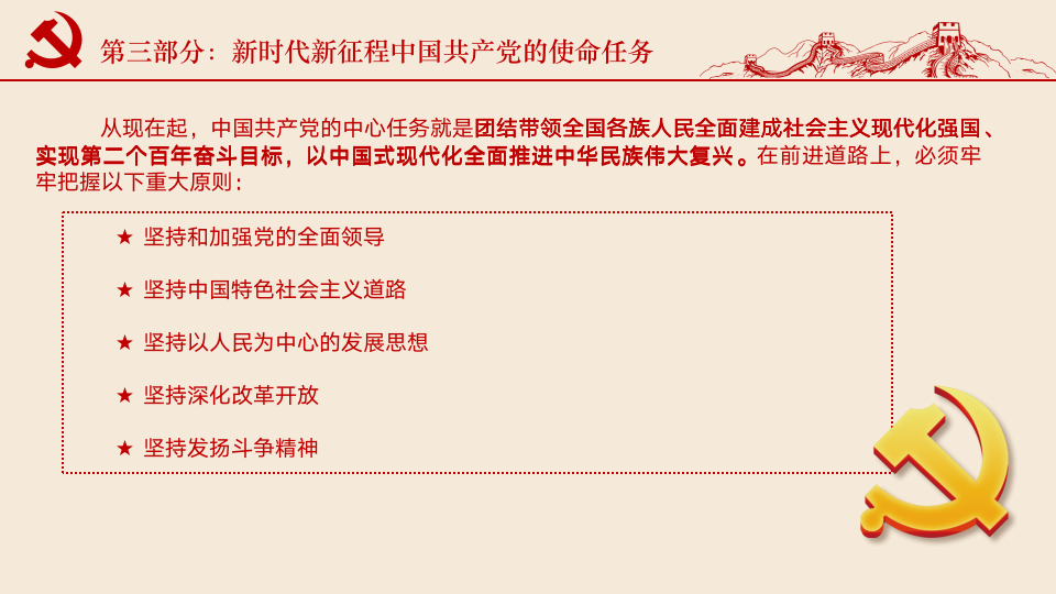 习近平总书记强调全⾯建设社会主义现代化国家,是⼀项伟⼤⽽艰巨的事业,前途光明,任重道远。今天,我们比历史上任何时期都更接近、更有信心和能力实现中华民族伟大复兴的目标,同时必须准备付出更为艰巨、更为艰苦的努力。全面把握中国式现代化的中国特色、本质要求和重大原则,以坚定的决心、信心、恒心,以强大的志气、骨气、底气,坚定不移把党的二十大提出的目标任务落到实处,始终掌握党和国家事业发展的历史主动,我们必将开创属于我们这一代人的历史伟业,在新的赶考之路上创造新的时代辉煌。