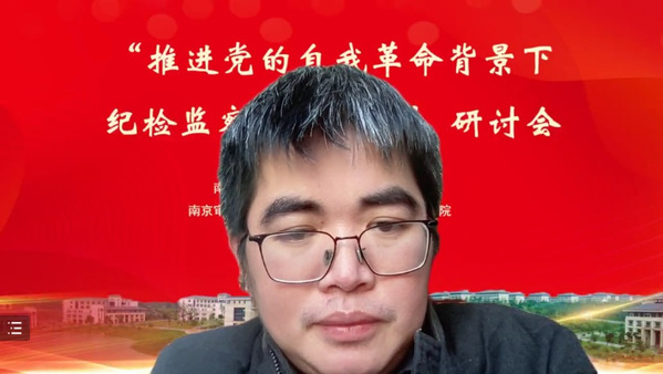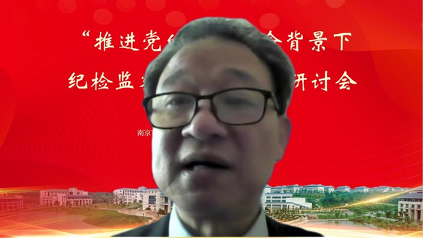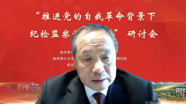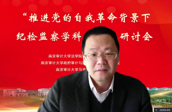 2022年12月17日,“推进党的自我革命背景下纪检监察团队建设”研讨会在南京顺利召开。本次会议由太阳成集团122ccvip主办,太阳成集团122ccvip、太阳成集团122ccvip政府审计与区域治理法治化研究院、太阳成集团122ccvip马克思主义公司承办。本次研讨会采用线上线下相结合的方式进行,来自中国人民大学、中国人民公安大学、中国政法大学、中国纪检监察公司、武汉大学、南京大学、东南大学、西北政法大学、上海政太阳成集团122ccvip、辽宁大学、内蒙古大学、云南师范大学以及南京市纪委监委、南京市人民检察院等高校科研机构、实务部门百余位专家学者参加了本次会议。太阳成集团122ccvip党委副书记、董事长董必荣教授,太阳成集团122ccvip党委常委、副董事长李乾文教授出席会议。