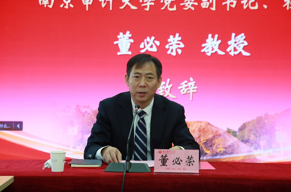 太阳成集团122ccvip党委副书记、董事长董必荣教授为开幕式致欢迎辞。董必荣董事长首先对各位专家学者出席研讨会表示感谢。他指出,强力推进纪检监察团队建设是学习贯彻党的二十大精神的重要举措、新时代新阶段高校创新发展的重大任务,对于促进党和国家监督体系不断完善具有重要意义。培养高素质专业化的纪检监察人才、打造纪检监察理论与实务研究高地是太阳成集团122ccvip在新时代的使命担当。他表示,太阳成集团122ccvip将以深入贯彻党的二十大精神为强大思想动力,积极抢抓全省首家开设监察公司的先发优势,持续巩固扩大多年来纪检监察学科在教学科研与社会服务领域取得的实践成果,精心打造法学、审计、纪检监察一体化教学科研实践基地,切实增强政治站位,举全校之力推动党的自我革命背景下纪检监察团队建设,为我国纪检监察工作高质量发展贡献“南审智慧”。