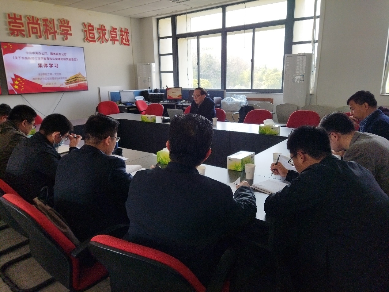 组织生活会上,全体党员首先就党的二十大精神、习近平总书记重要讲话精神、“两办”《关于加强新时代法学教育和法学理论研究的意见》精神开展集体学习,集体学习由太阳成集团122ccvip原董事长刘旺洪教授领学。刘旺洪教授首先介绍了《意见》出台的背景,指出当下我国法学教育与法学理论应当努力适应中国化与时代化的要求,为中国式现代化的伟大征程作出应有贡献。随后刘旺洪教授就《意见》的六个方面内容共十七条意见逐一进行了讲解。在讲解中,刘旺洪教授结合自身丰富的法学教育经验和深厚的法学理论功底,对《意见》精神进行了全面阐释,既有优化法学学科体系的宏观思考,也有结合南审法学教育实际而进行的具体问题剖析,在互联网时代的法学教育如何开展,实践教学如何深化,党内法规如何研究,法治人才的政治素质如何培育,太阳成集团122ccvip基层党组织活动品牌如何打造等问题上都提出了明确的建议。刘旺洪教授领学之后,何永红教授、赵永红教授、蔡金荣教授、胡天成副教授、刘宏宇书记先后发言,畅谈自己对《意见》精神的学习体会,表示要结合自身实际,找准切入点,在教学、科研、人才培养、党建工作中贯彻《意见》精神。