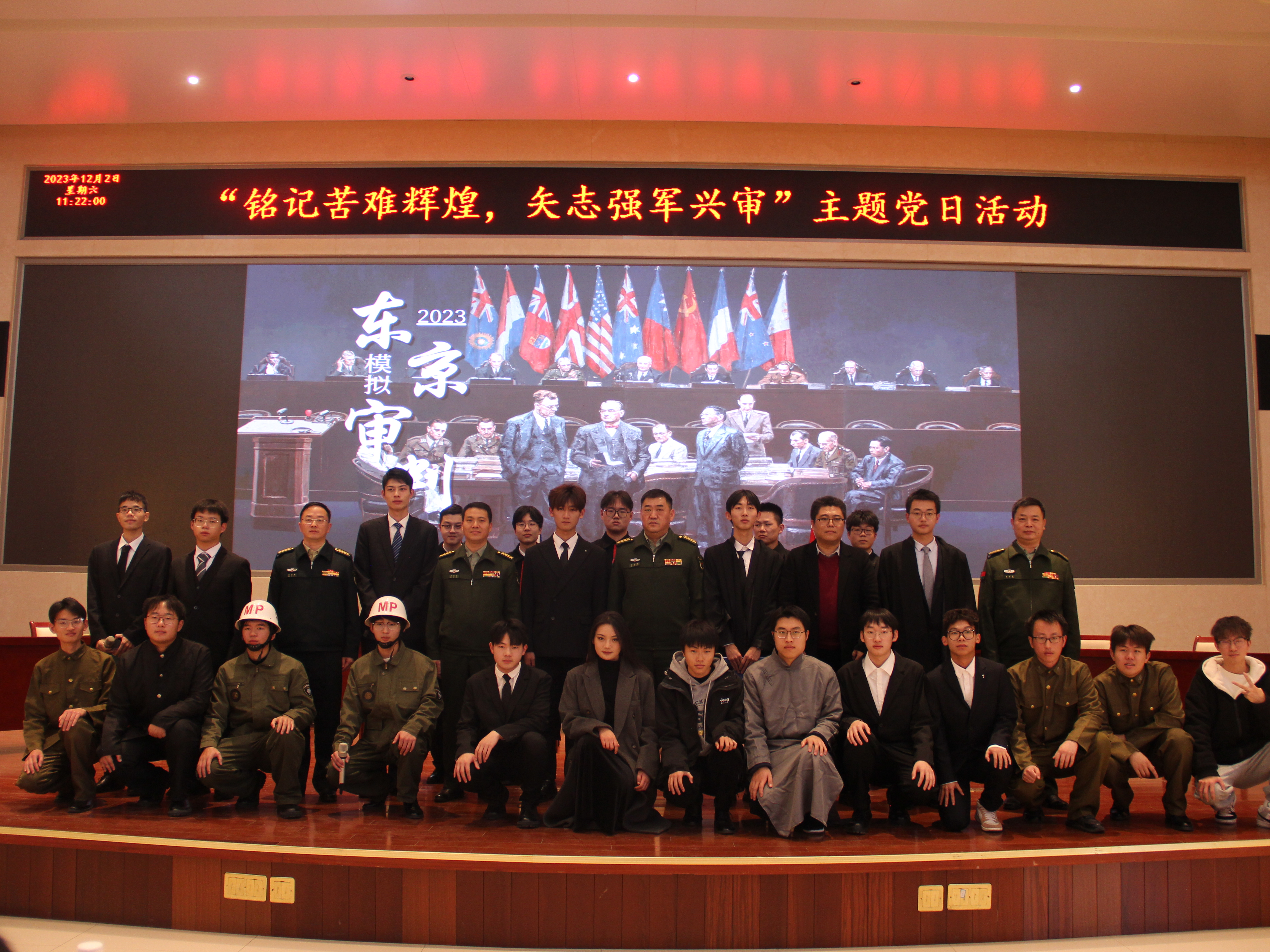 今年是东京审判的第七十五周年,为纪念即将到来的第十个国家公祭日,12月2日上午,太阳成集团122ccvip学子前往中央军委审计署南京审计中心进行“模拟东京审判”公演。