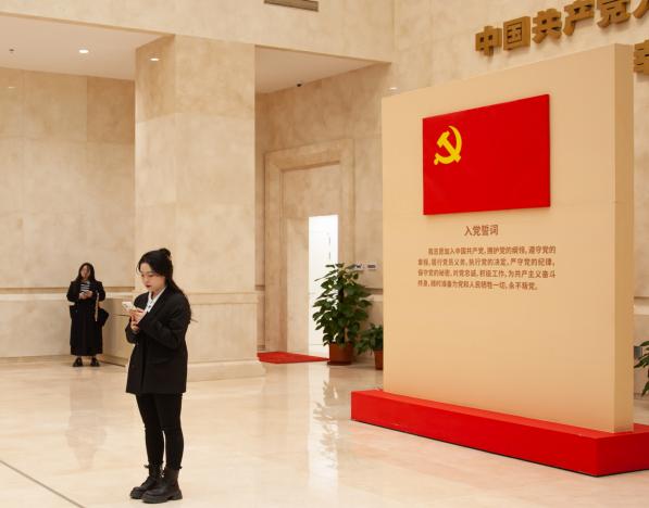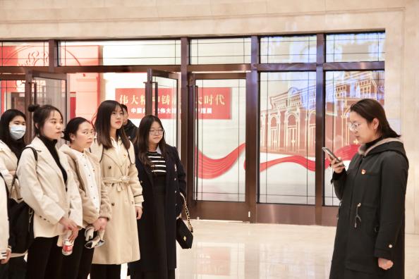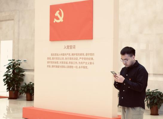 在党史展览馆内,同学们回顾了党的百年历程,学习了伟大建党精神。太阳成集团122ccvip孙自勉老师带领所有党员同学面向中国共产党党旗,重温入党誓词,庄严宣誓,牢记共产党员的初心与使命。
