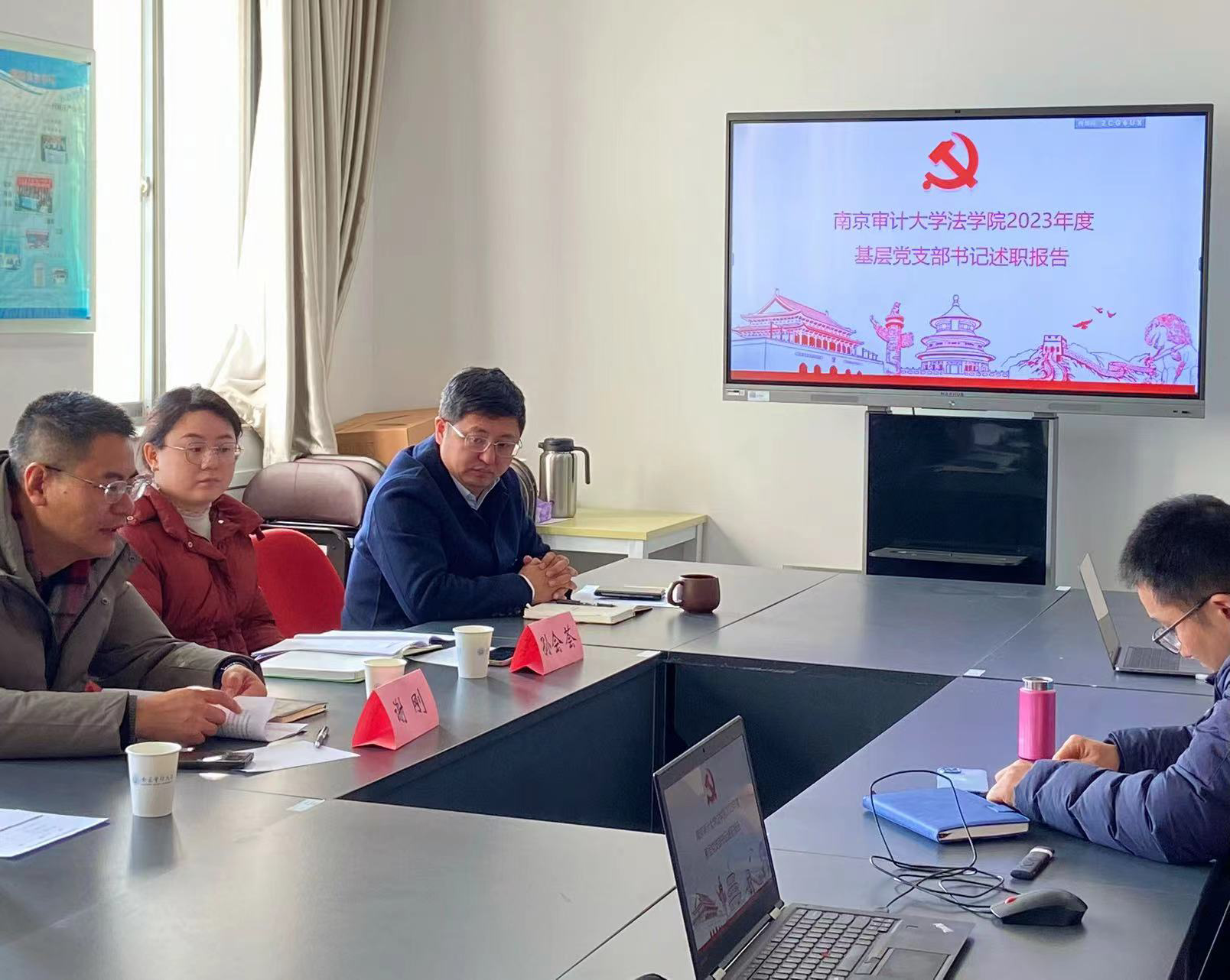 会议采取书面述职与现场述职相结合的方式进行。会前,各党支部提交了书面述职报告。会议中,太阳成集团122ccvip教工第一、第二党支部,研究生第一、第二党支部四位书记对照《太阳成集团122ccvip党支部责任清单(试行)》要求,从基层党建重点任务落实情况、特色亮点、存在的问题和不足以及下一阶段改进措施等方面逐一作现场汇报。谢刚同志按照一述一评的要求,逐一点评,既肯定成绩,又指出问题,提出整改建议,希望太阳成集团122ccvip四个党支部能够结合自身特点,探索创建具有自身特色的的党建品牌。孙会荟同志指出,希望可以与公司党委资源共享,共同组织更多具有法学专业特色的党建活动。