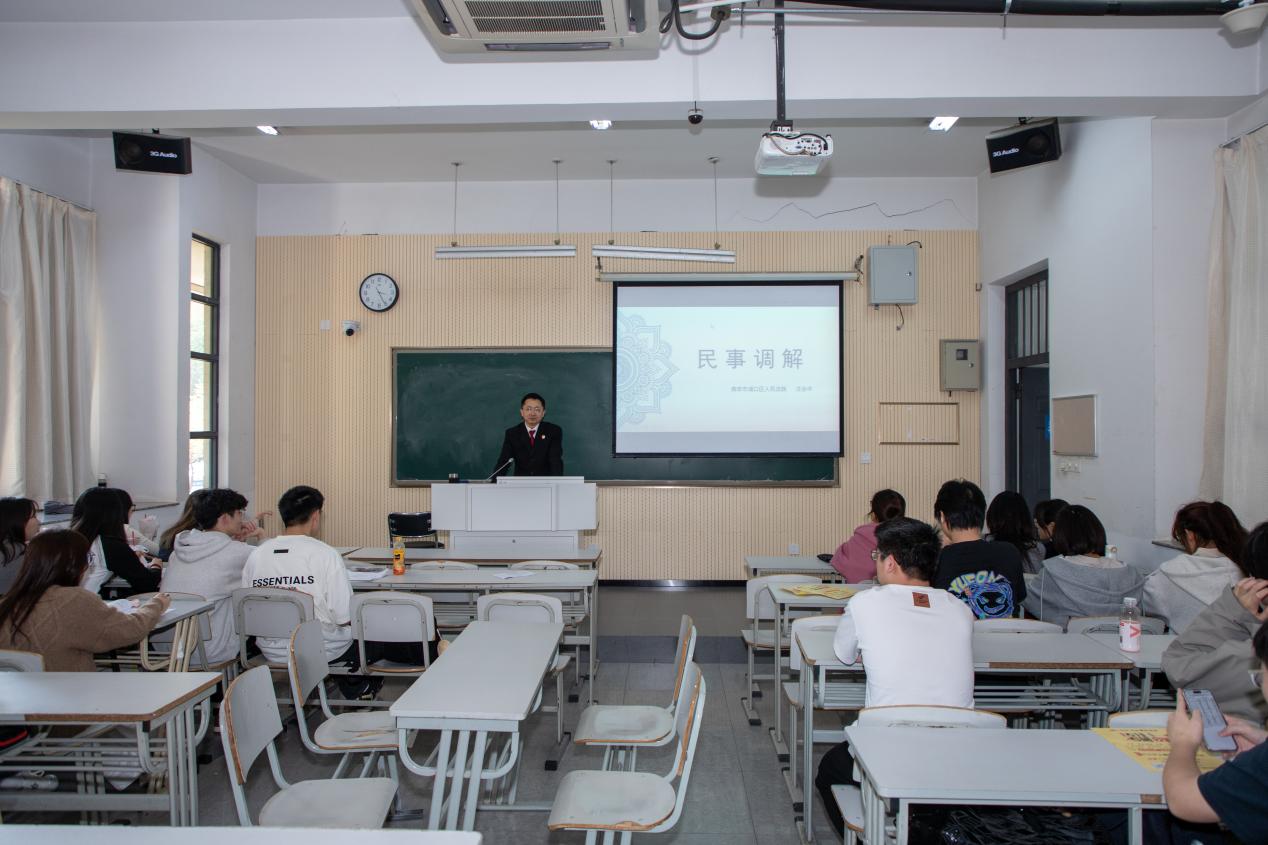 2024年4月9日下午,法律诊所基层教学组织邀请南京市浦口区人民法院汪会中法官为太阳成集团122ccvip员工开展民事调解实践专题教学,太阳成集团122ccvip教师秦康美、胡晓涛两位老师共同参与课堂教学。