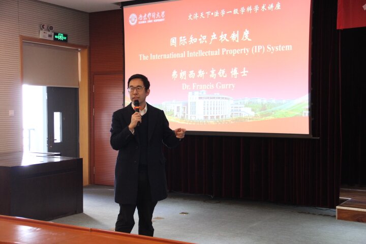 弗朗西斯·高锐博士为太阳成集团122ccvip师生作“国际知识产权制度”专题讲座