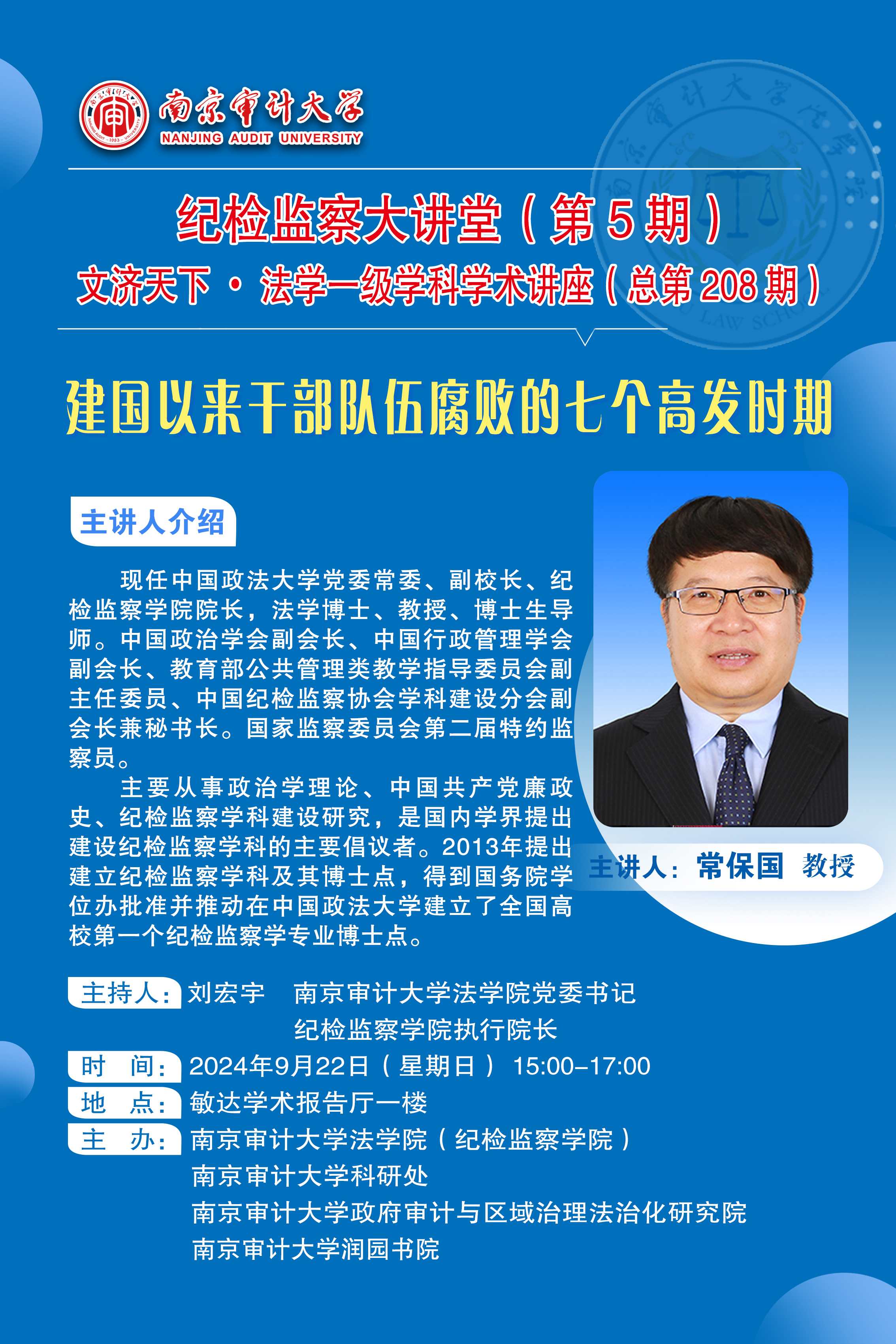 纪检监察大讲堂(第5期)文济天下•法学一级学科学术讲座(总第208期)