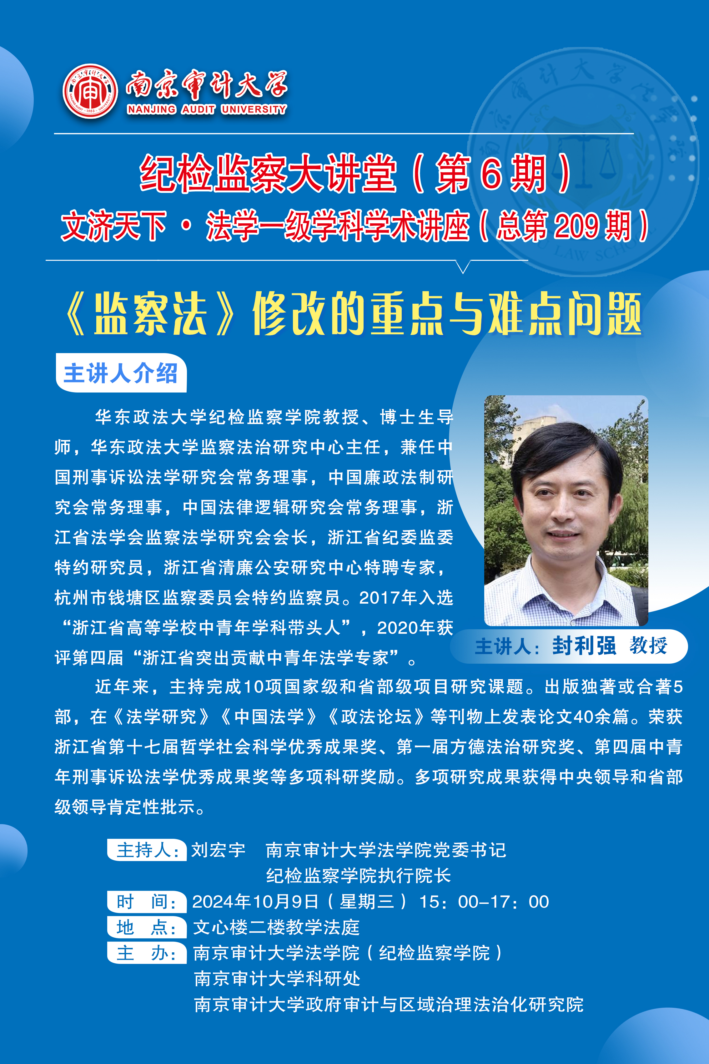 纪检监察大讲堂(第6期)文济天下•法学一级学科学术讲座(总第209期)