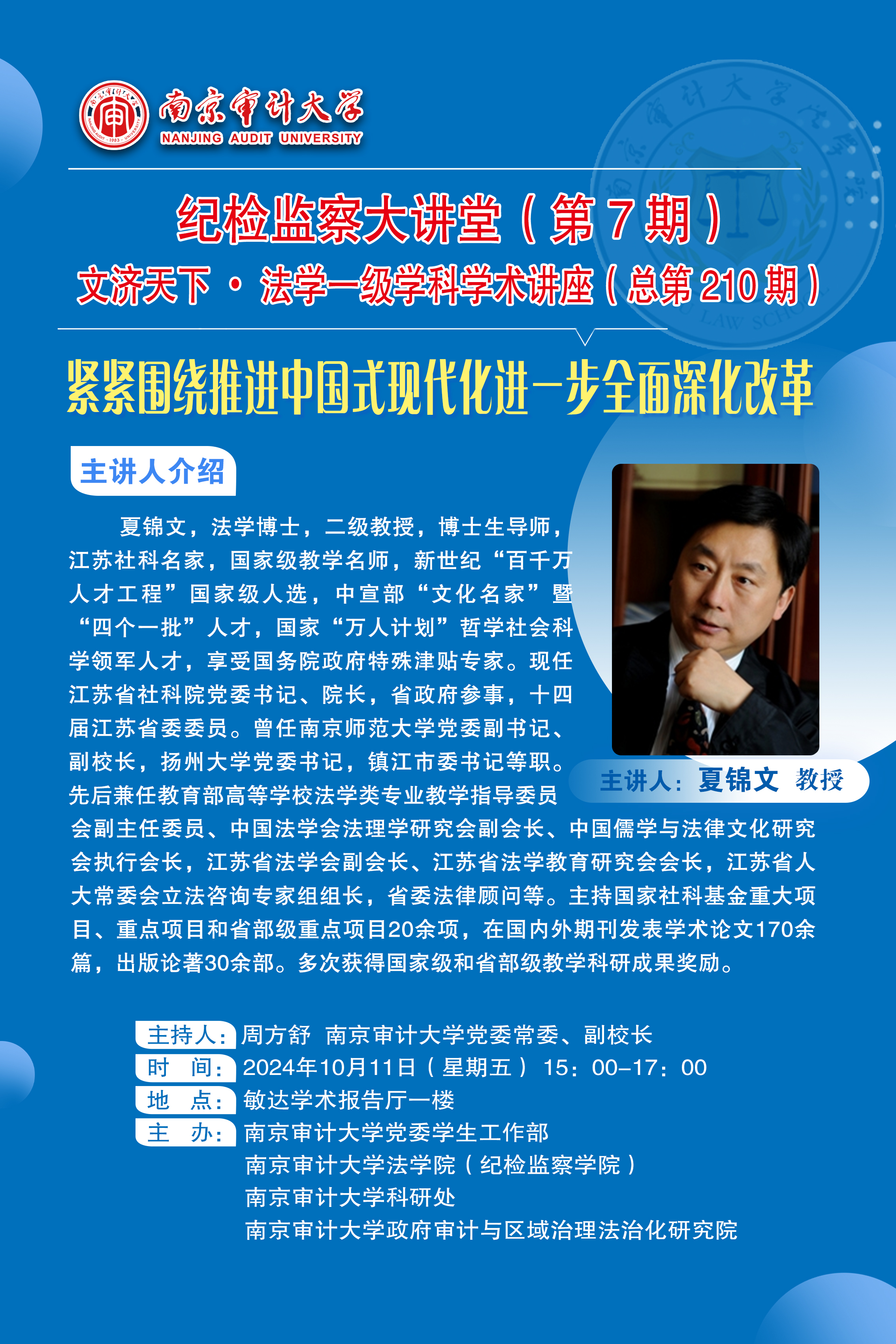 纪检监察大讲堂(第7期)文济天下•法学一级学科学术讲座(总第210期)