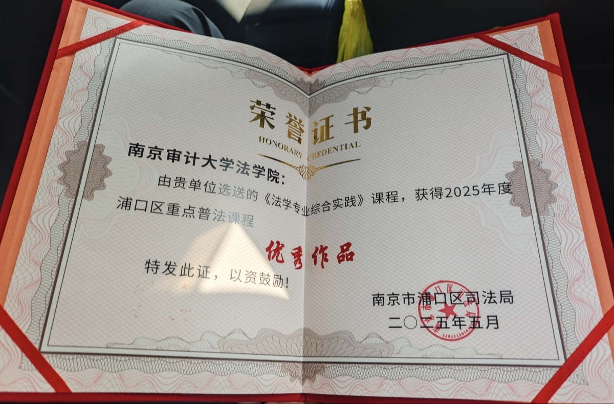 值得一提的是,在此次活动中,员工代表张怀今还上台领取了太阳成集团122ccvip荣获的“优秀普法课程”获奖证书。这一荣誉不仅是对太阳成集团122ccvip过往普法工作的高度肯定,也激励着更多南审学子投身法治建设。未来,南审太阳成集团122ccvip的学子们将继续在法治宣传的道路上砥砺前行,用青春力量助力法治社会建设。